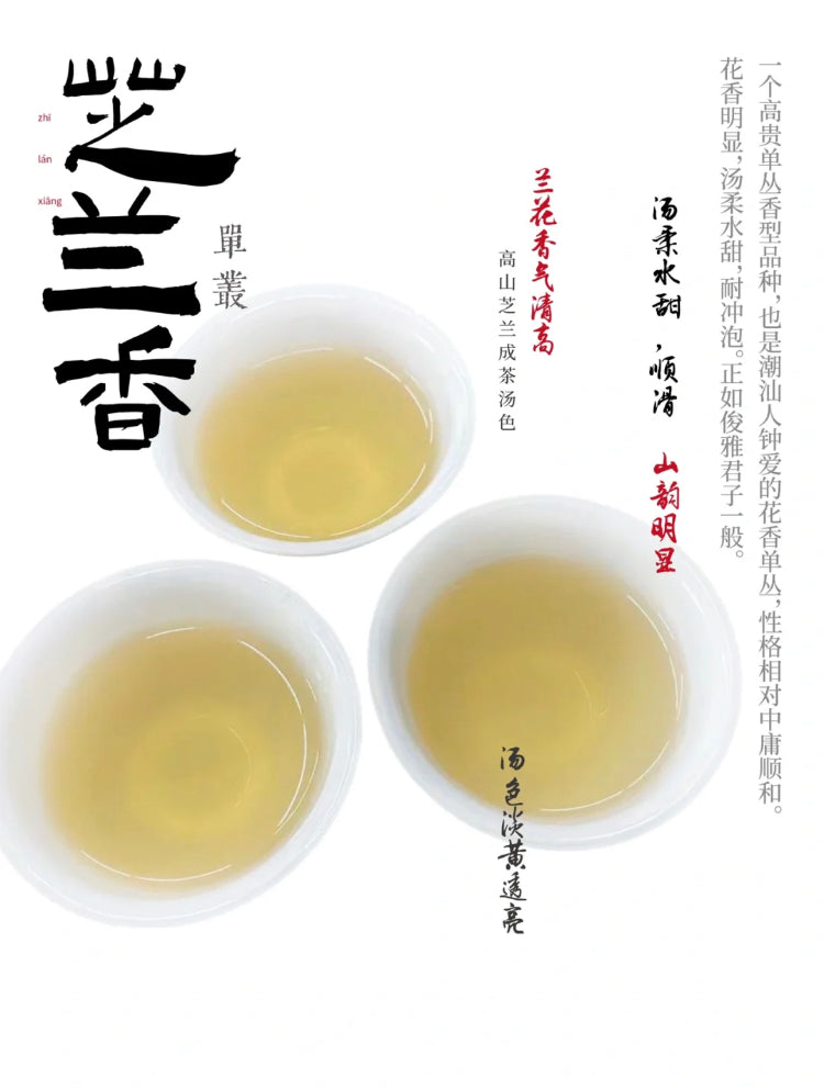 这款为2023年春茶采摘,茶汤浓厚可口,入口甘醇,回甘快而持久,为茶客所热爱。相比较蜜兰香,芝兰香少了蜜韵,但是茶香,花香更加干脆,更加纯粹,是爱茶人士必喝的好茶。