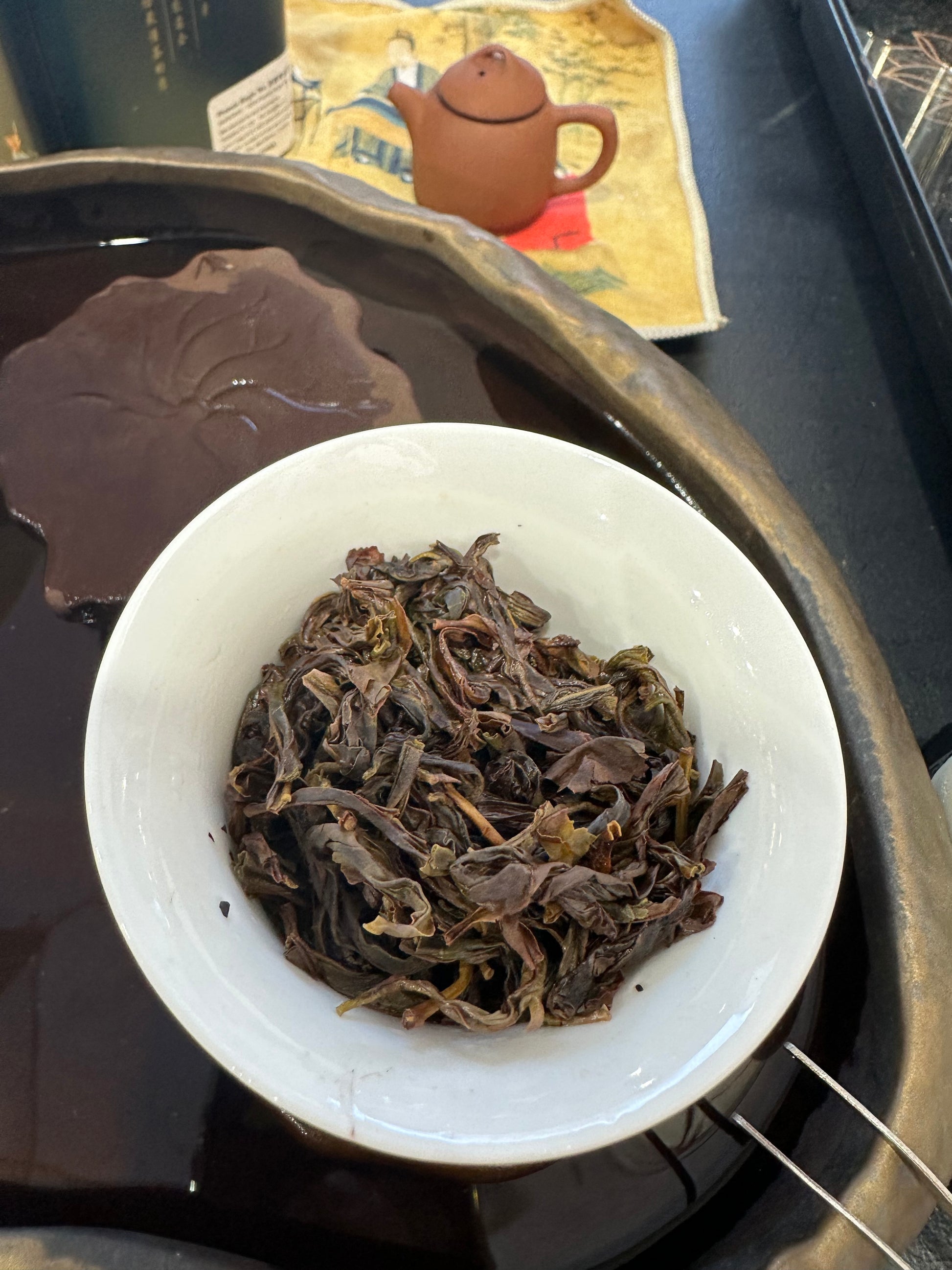 其实在烫壶热杯过后,投茶入壶,简单的摇香后,荔枝的香甜味已经隐约可以闻到,开水冲茶后,一股非常好闻的荔枝味已经扑鼻而来了。